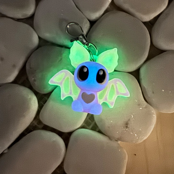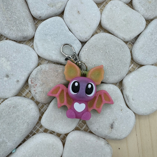 Diese zuckersüße Mini-Fledermaus ist jetzt auch als Schlüsselanhänger erhältlich – damit du sie immer bei dir tragen kannst! Mit ihren großen Kulleraugen, dem weißen Herz auf dem Bauch und den farbenfrohen Flügeln zieht sie alle Blicke auf sich. Und als besonderes Highlight: Sie leuchtet im Dunkeln!