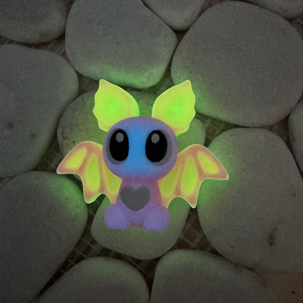 Klein, aber mit ganz großem Herz! Diese süße Mini-Fledermaus mit großen Kulleraugen, farbenfrohen Flügeln und einem weißen Herz auf dem Bauch ist der perfekte Glücksbringer – ob als Geschenk, Mitbringsel oder einfach zum Selbstbehalten. Und das Beste: Sie leuchtet im Dunkeln!