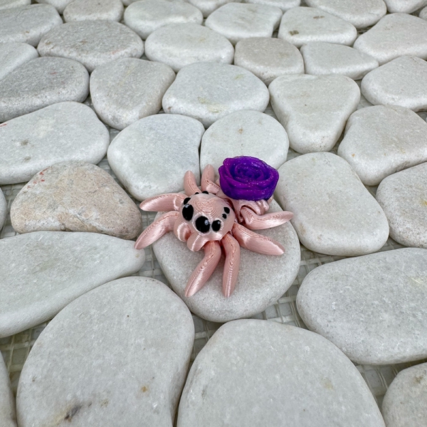 Manchmal braucht es nur eine kleine Geste, um ein Lächeln zu zaubern. Die Mini Rosenspinne ist genau das – ein sanftes, liebevoll gestaltetes Fantasiewesen mit einer kunstvoll gedruckten Rose auf dem Rücken.