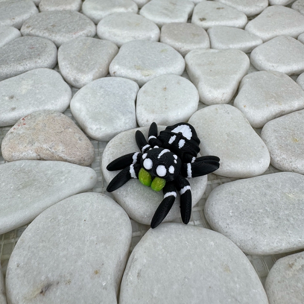 Klein, aber kraftvoll – die Mini Spinne in kontrastreichem Schwarz-Weiß ist ein echter Hingucker mit Charakter. Ihre grün schimmernden Mundwerkzeuge verleihen ihr einen Hauch von Mystik und Lebendigkeit. Diese kleine Kreatur steht für Stärke im Verborgenen und Individualität in jedem Detail.